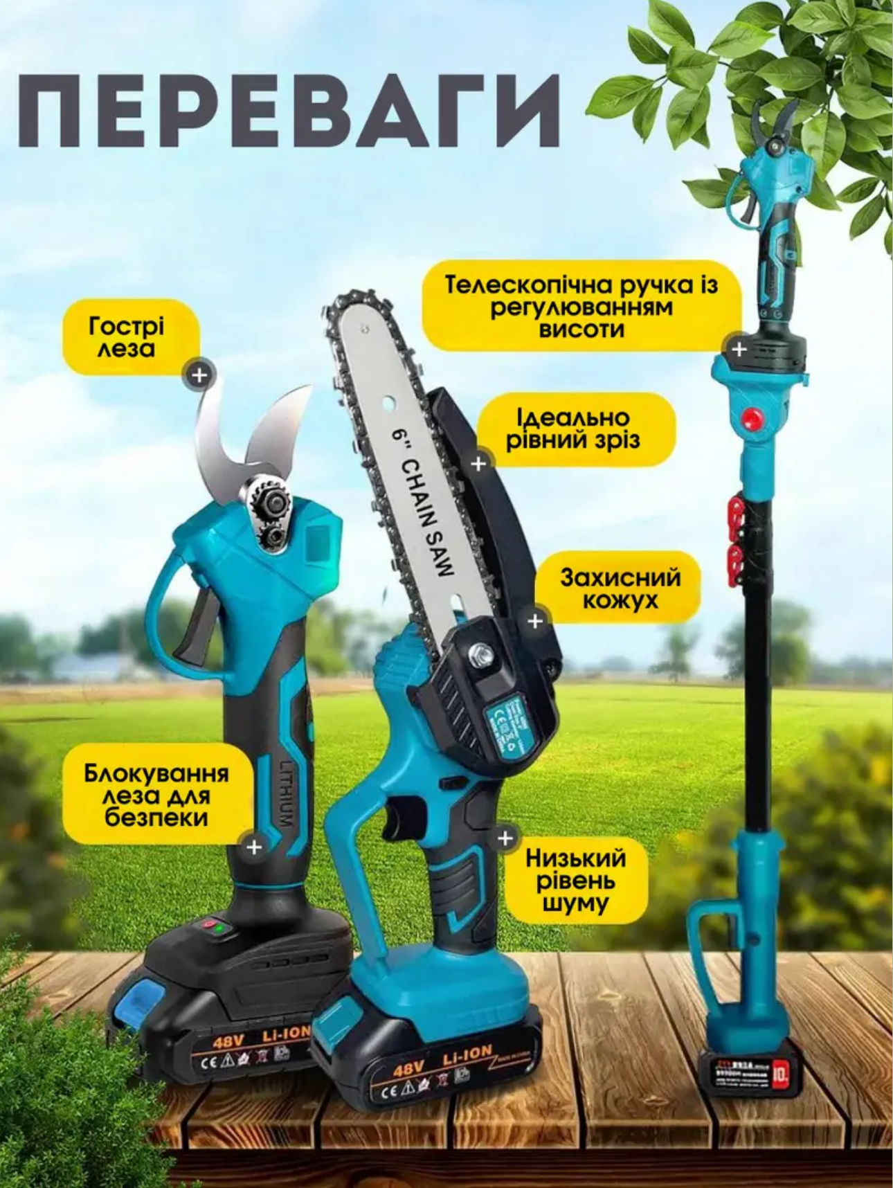Акумуляторна пила та секатор з подовжувачем – це універсальний садовий інструмент, призначений для ефективного догляду за вашими деревами та рослинами. Завдяки поєднанню функцій пилки та секатора, ви зможете легко обрізати гілки різної товщини, а подовжувач дозволяє працювати на висоті, забезпечуючи доступ до важкодоступних місць.